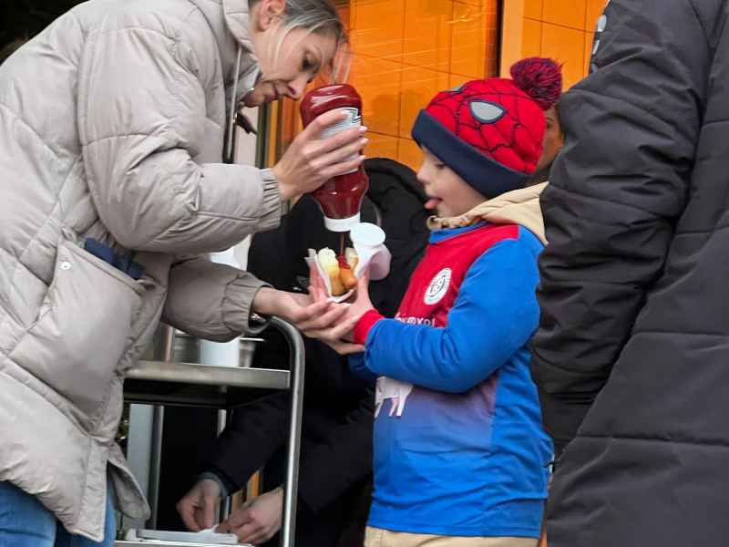 Dazu bekam jedes Kind ein paar warme Wiener mit Brötchen und ein Getränk – >ein kleines Festbankett 💪🏻mitten im grauen November. Warm im Bauch, warm im Herzen. 🌭🥖🥤❤️🩶